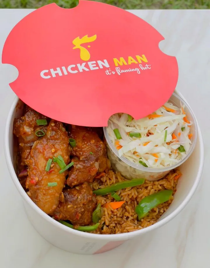 ChickenMan Special jollof & chicken bucket........what are you waiting for?? Order Maxi Package 95 cedis 15pcs wings Jollof Coleslaw